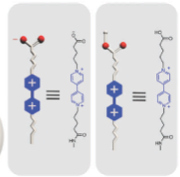 When the α -CD ring is complexed with the stalk at neutral pH, the bulky cyclic component is located near the pore openings, thereby blocking departure of cargo molecules that were loaded in the nanopores and hollow interior of the particle. Protonation of the nitrogen atoms at lower pH causes the binding affinity to decrease, releasing the α-CD and allowing the cargo molecules to escape.