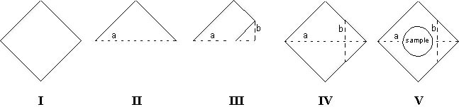 II. Fold the paper diagonally (fold a).