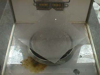 V. Carefully place your sample on the weighing paper to the left